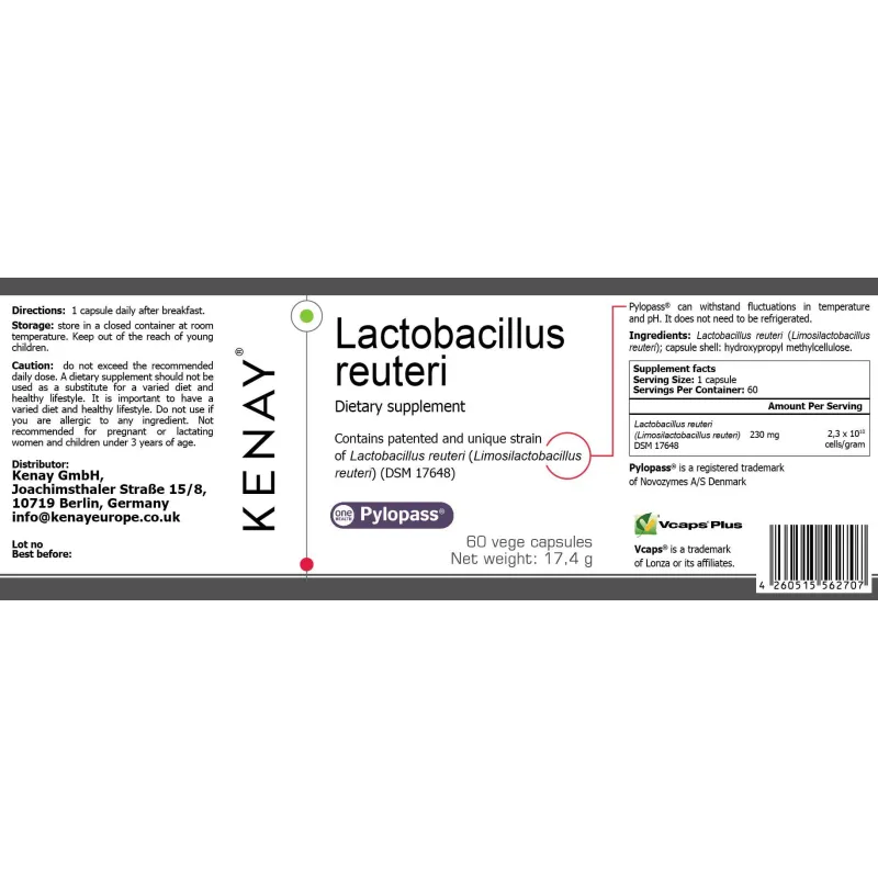 | Lactobacillus reuteri DSM 17648 [Pylopass®] | 230 mg |