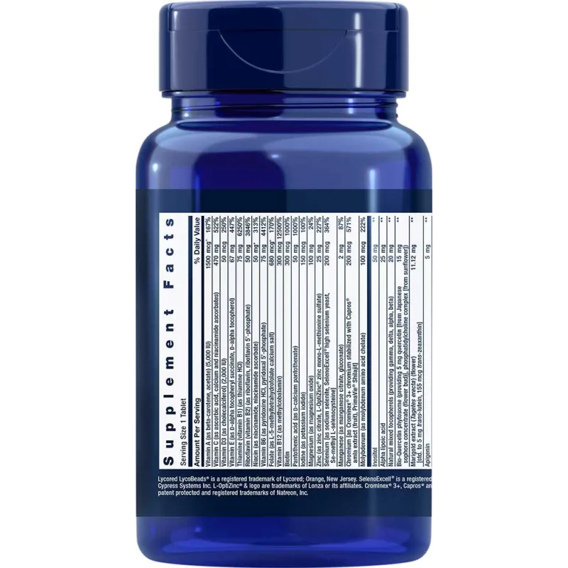 | Marigold extract (flower) [std. to 5 mg trans-lutein, 155 mcg trans-zeaxanthin] | 11.12 mg |