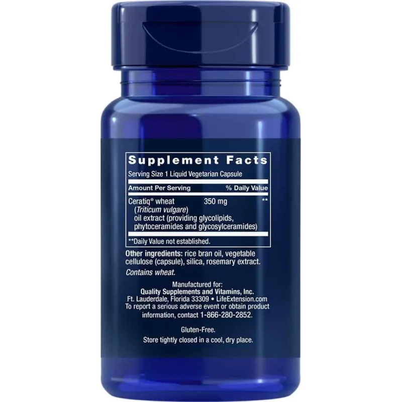 | Ceratiq® wheat (Triticum vulgare) oil extract (providing glycolipids, phytoceramides and glycosylceramides) | 350 mg |