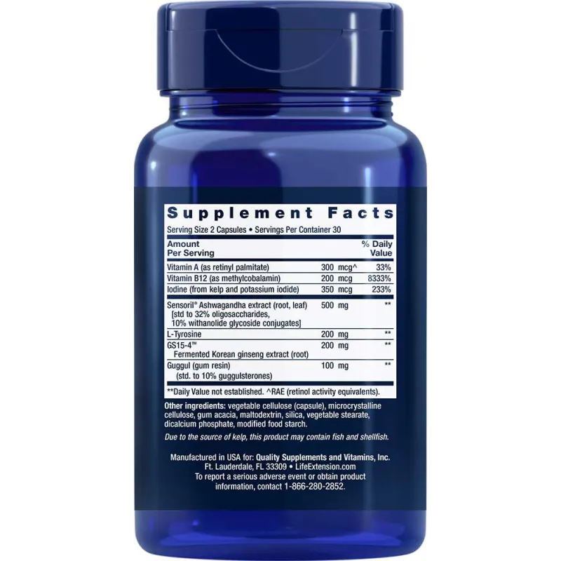 | Sensoril® Ashwagandha extract (root and leaf) [std. to 32% oligosaccharides, 10% withanolide glycoside conjugates] |