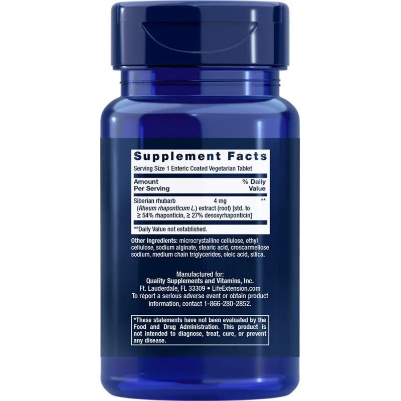 Alivio de la menopausia utiliza extracto clínicamente estudiado de raíz de ruibarbo siberiano (Rheum rhaponticum L.) para tratar los sofocos, los sudores nocturnos, la irritabilidad, los cambios de humor, los trastornos del sueño, el agotamiento, las molestias en las articulaciones y los músculos, la sequedad vaginal, la salud urinaria y la función sexual asociada con la menopausia. Es un alivio completo de la menopausia en una práctica tableta que se toma una vez al día.