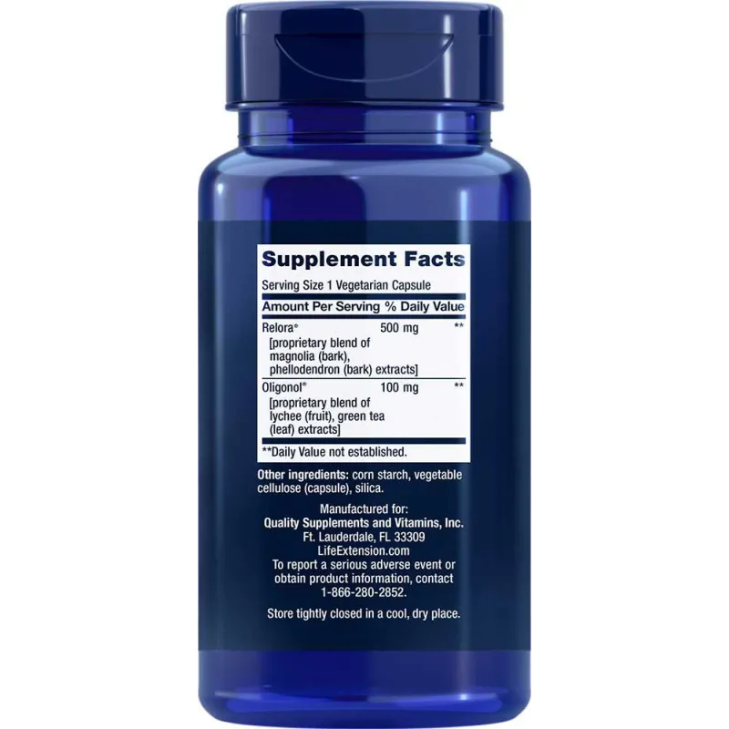 | Relora® [mezcla patentada de extractos de magnolia (corteza) y fellodendro (corteza)] | 500 mg |