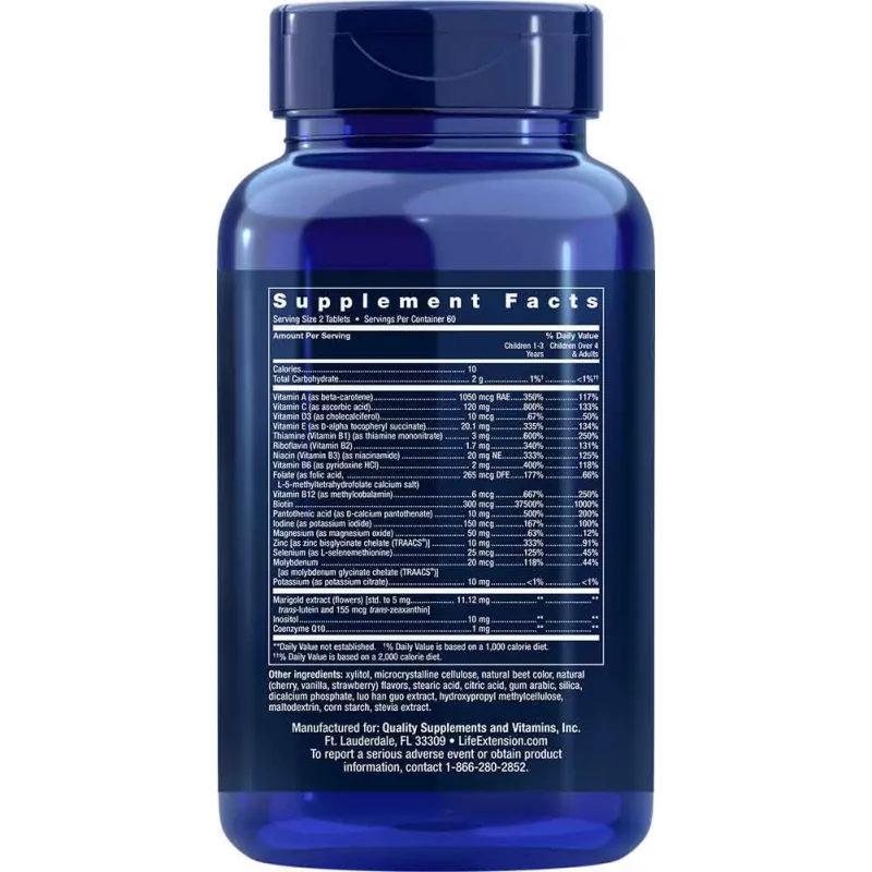 Contiene los nutrientes que se encuentran en Life Extension Mix™ en cantidades adecuadas para niños de cuatro años en adelante