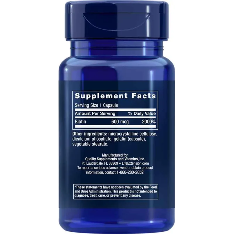 La biotina es un miembro innumerable de la familia del complejo B soluble en agua, normalmente solo se requiere en cantidades mínimas. La biotina se utiliza como cofactor de las enzimas involucradas en el metabolismo de los ácidos grasos, la gluconeogénesis y el catabolismo de los aminoácidos, y es esencial para mantener la homeostasis metabólica.1-4 La biotina desempeña un papel importante en el funcionamiento metabólico como coenzima transportadora de dióxido de carbono activado en el Ciclo TCA (también conocido como ciclo de Krebs).3-7 En su forma de coenzima, la biotina sintetiza glucosa a partir de fuentes distintas de los carbohidratos, y sintetiza y descompone ciertos ácidos grasos y aminoácidos.4-7Tamaño de la porción: 1 cápsula