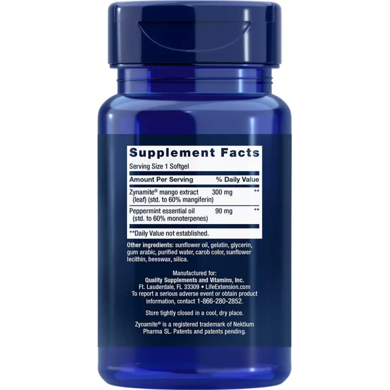 | Zynamite® extrait de mangue (feuille) (std. à 60 % de mangiférine) | 300 mg |