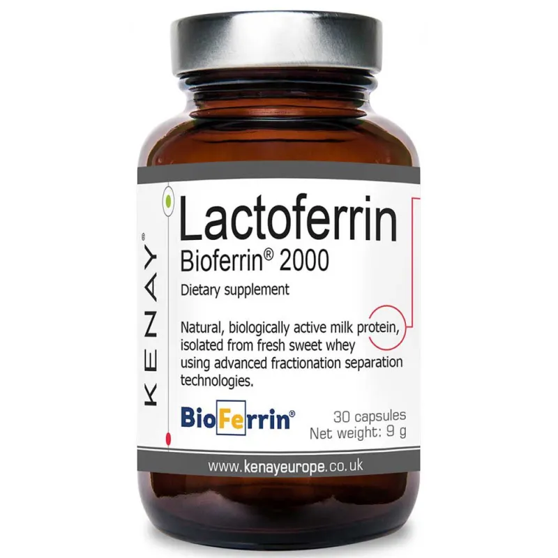 La lactoferrine, comme son nom l'indique (lacto + ferrine = lait + fer), est une protéine du lait qui lie le fer, ce qui aide à équilibrer les niveaux de fer dans le corps.[2-7] Lactoferrine, en raison de sa capacité à lier le fer de manière forte et réversible. ions, aide le corps à maintenir l'homéostasie de ce microélément important.[3,8]
