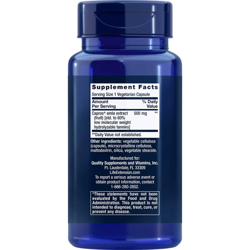 | Estratto acquoso di Capros® amla (frutto) [std. al 60% di tannini idrolizzabili a basso peso molecolare] | 500 mg |
