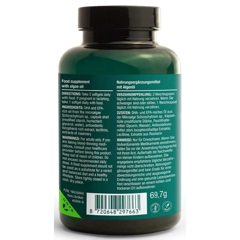Due capsule di Vitalized Vegan Omega-3 forniscono 900 mg di entrambi EPA e DHA da alghe pure e di qualità superior. Questo prodotto straordinario e unico è prodotto in Europa ed è senza glutine e non OGM.
