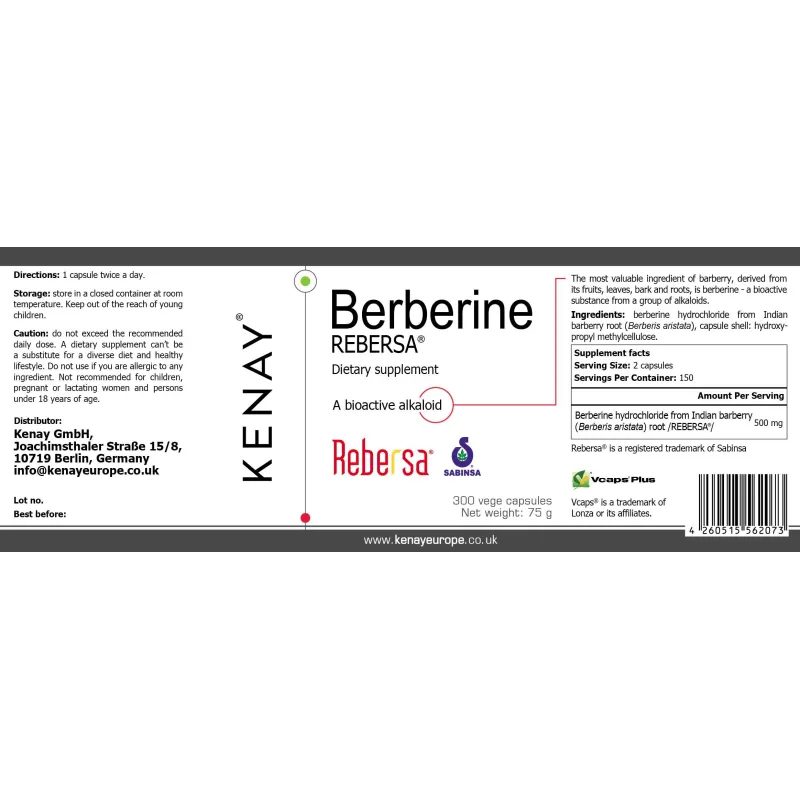 Ingredienti: Berberina cloridrato dalla radice del crespino indiano (Berberis aristata), rivestimento della capsula: idrossipropilmetilcellulosa. |