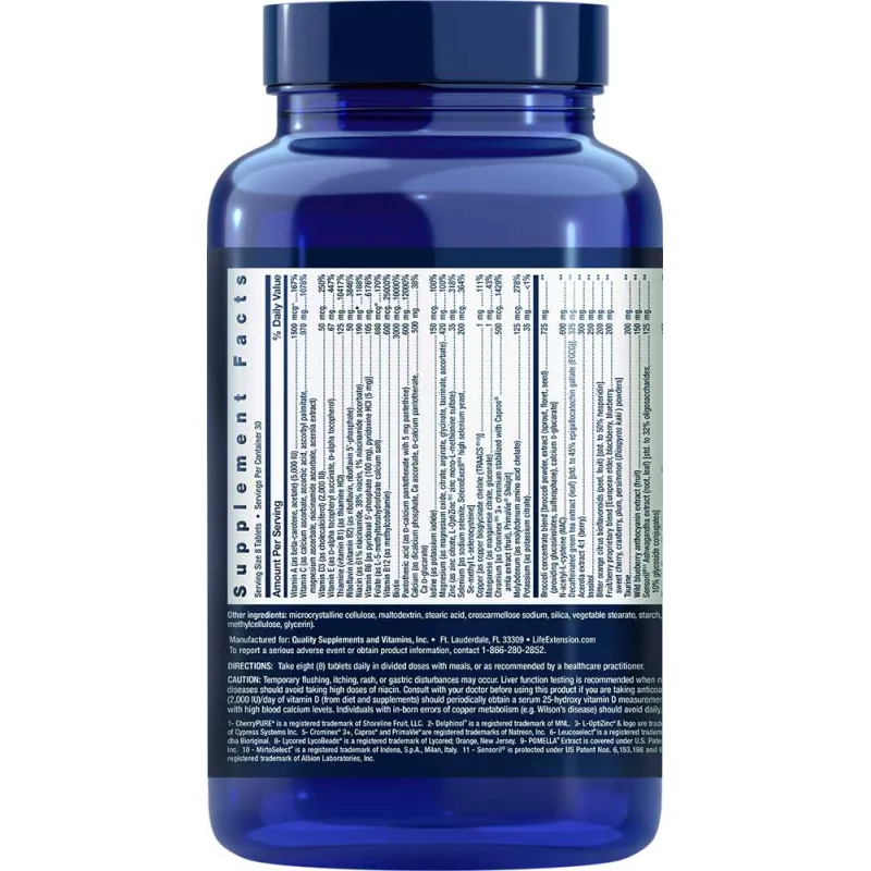 Life Extension Mix™ contiene anche più luteina e più licopene rispetto alle popolari vitamine giornaliere. La luteina, un estratto che si trova nel mais e nelle verdure a foglia verde come cavoli e spinaci, ha dimostrato di aiutare a mantenere i pigmenti critici nella macula oculare,117-mentre il licopene dei pomodori aiuta a mantenere la struttura del DNA e protegge dall'ossidazione delle LDL.118-128