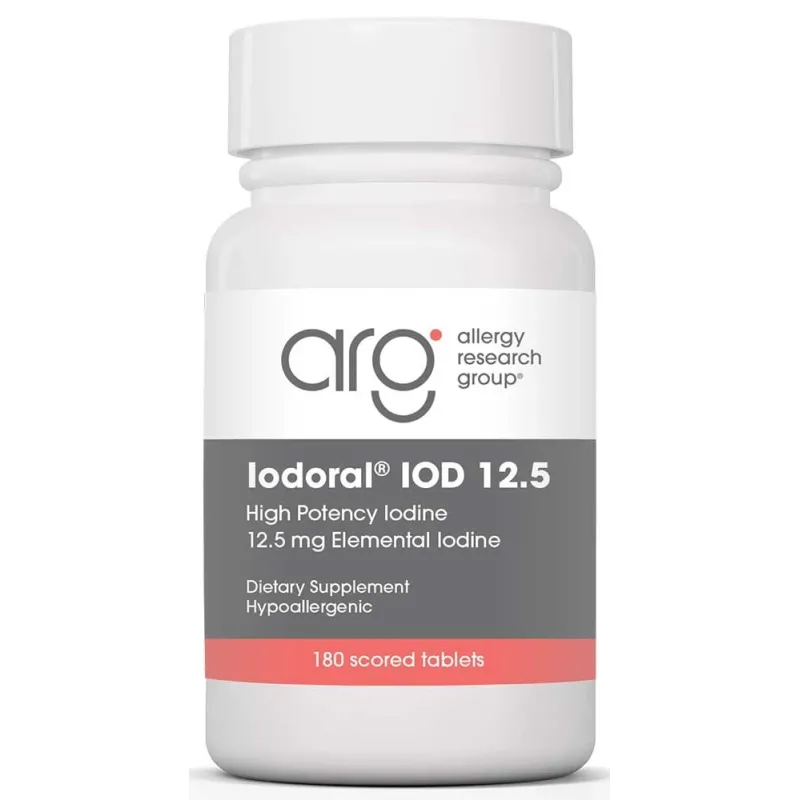 Dawka 12,5mg (12 500 mcg) opiera się na historycznych wzorcach spożycia u Japończyków i protokołach terapeutycznych niedoboru jodu. Chociaż RDA wynosi tylko 150 mcg dziennie (zaprojektowane w celu zapobiegania wolu), optymalna wystarczalność jodu dla całego organizmu może wymagać 1-13mg dziennie zgodnie z badaczami jodu. Populacje japońskie spożywające diety bogate w wodorosty morskie średnio 5-13mg dziennie mają niższe wskaźniki chorób piersi, gruczołu krokowego i problemów tarczycy w porównaniu do populacji z niedoborem jodu. Iodoral® zawiera 5mg jodu plus 7,5mg jodku (dwie biodostępne formy) łącznie 12,5mg—ta kombinacja wspiera nie tylko tarczycę, ale także tkankę piersi, prostatę, jajniki i inne narządy gromadzące jod. Dawka znacznie przekracza „tolerowany górny limit" 1100 mcg ustalony w celu zapobiegania dysfunkcji tarczycy w populacjach wystarczających pod względem jodu, ale terapeutyczne protokoły jodu wykorzystują 12,5-50mg dziennie pod nadzorem medycznym w przypadku stanów takich jak włóknisto-torbielowata choroba piersi, zajmując się niedoborem jodu w całym organizmie, który objawia się w tkankach poza samą tarczycą.