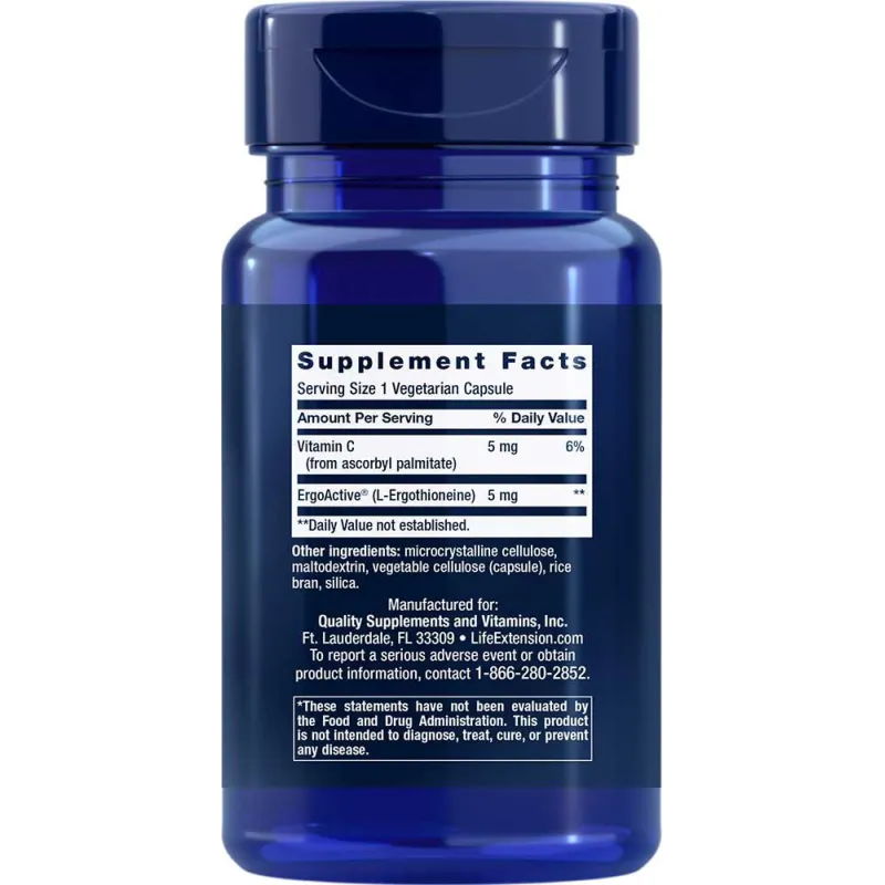 Dzięki swoim właściwościom neutralizowania wolnych rodników i ochrony komórek ergotioneina wspomaga długowieczność i zdrowie.[2] Transport ergotioneiny do komórek jest bardzo specyficzny, a to sugeruje, że ma ona kluczowe znaczenie dla ogólnego stanu zdrowia.[3,4]