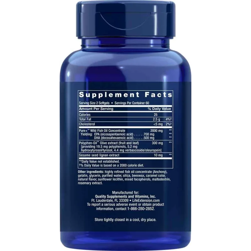Będący częścią naszej serii OMEGA FOUNDATIONS®, - Super Omega-3 EPA / DHA z lignanami sezamowymi i ekstraktem z oliwek zawiera oczyszczony, świeży olej rybi z Mintaja Alaskiego poławianego w sposób zrównoważony, olej ten uzyskał najwyższą ocenę w standardzie International Fish Oil Standards (IFOS ™). Formuła zainspirowana została zdrową dla serca - dietą śródziemnomorską, ponadto suplement zawiera również ekstrakt z oliwek i lignany sezamowe – składniki wspomagające prawidłową pracę serce i prawidłowe funkcje poznawcze, wzbogacony został również naturalnym aromatem cytrynowy, jest to najbardziej wszechstronny suplementem Omega-3 dostępny na rynku.