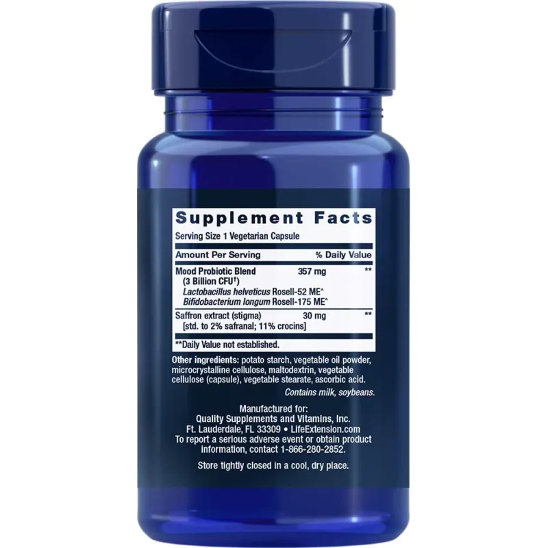 | Mieszanka probiotyczna poprawiająca nastrój [3 miliardy CFU†] Lactobacillus helveticus Rosell-52 ME^ Bifidobacterium longum Rosell-175 ME^ |